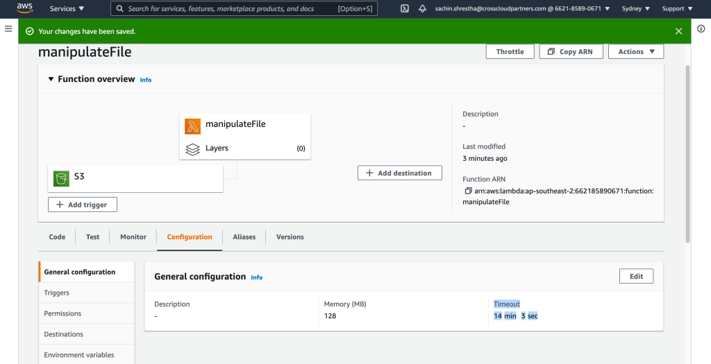 What you need to do is increase the time out of the lambda function, max 15 mins. Default: 3 secs.